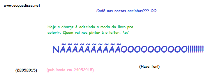 "Hoje a charge é aderindo a moda do livro pra colorir. Quem vai nos pintar é o leitor! \o/
